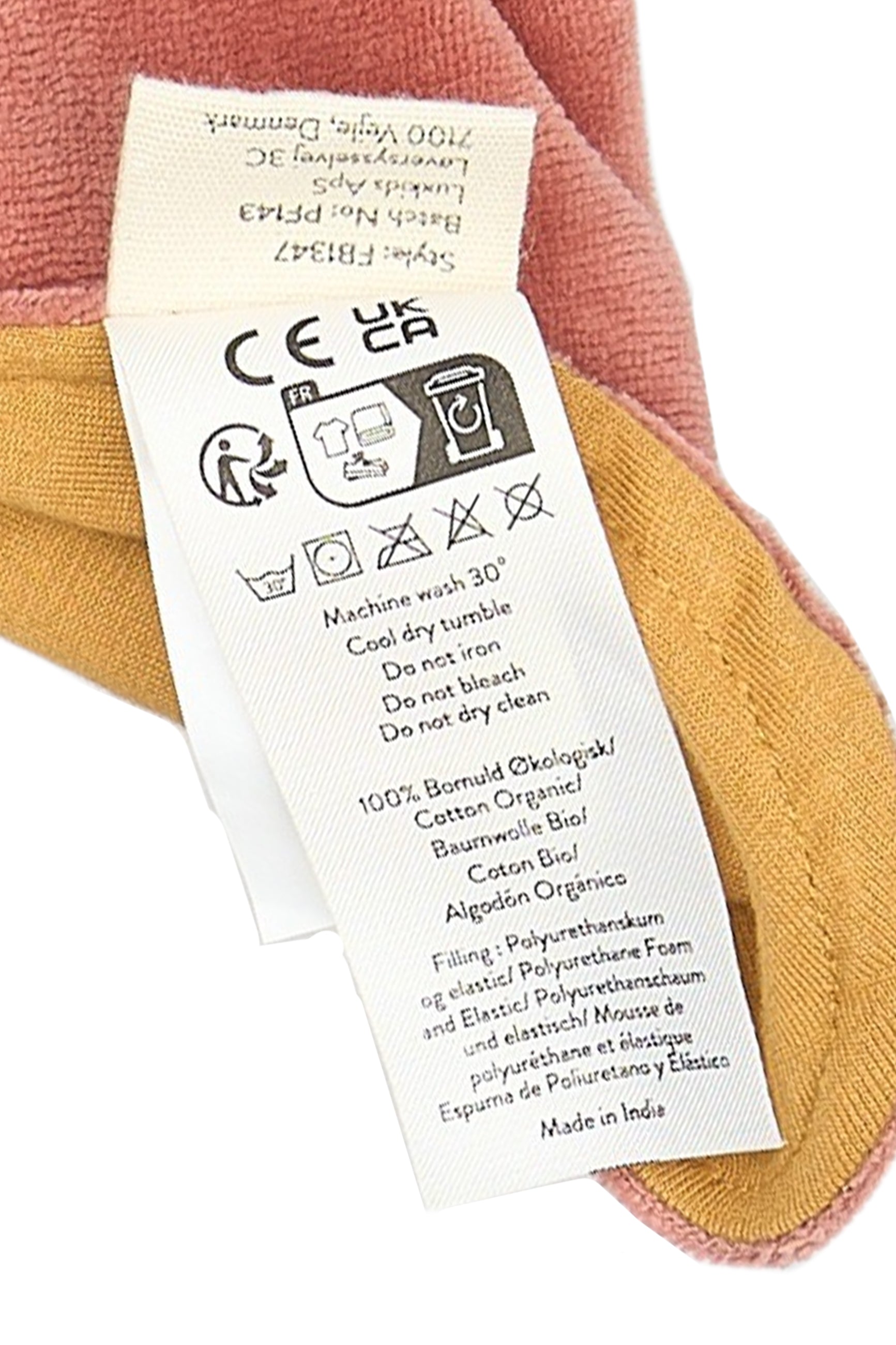 Pflegehinweise: Maschinenwäsche bei 30 °C – Trocknen im Schonprogramm – Nicht bügeln – Nicht bleichen – Nicht chemisch reinigen