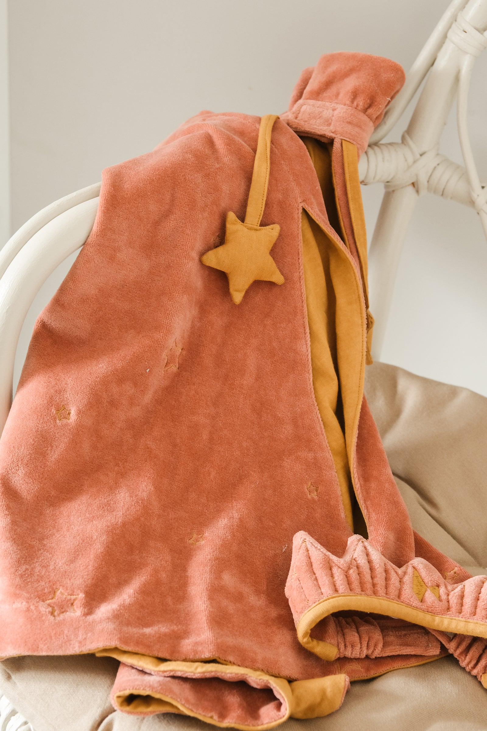 Regiere mit Anmut und Eleganz in diesem atemberaubenden Königinnen-Umhang mit passender Krone! Hergestellt aus weichem, samtigem roten Stoff mit feinen Details, verwandelt dieser Umhang jedes Kind in eine echte royale Persönlichkeit. Die passende Krone rundet das Kostüm perfekt ab und ist ideal für fantasievolles Spielen, königliche Bälle und große Märchenabenteuer.
